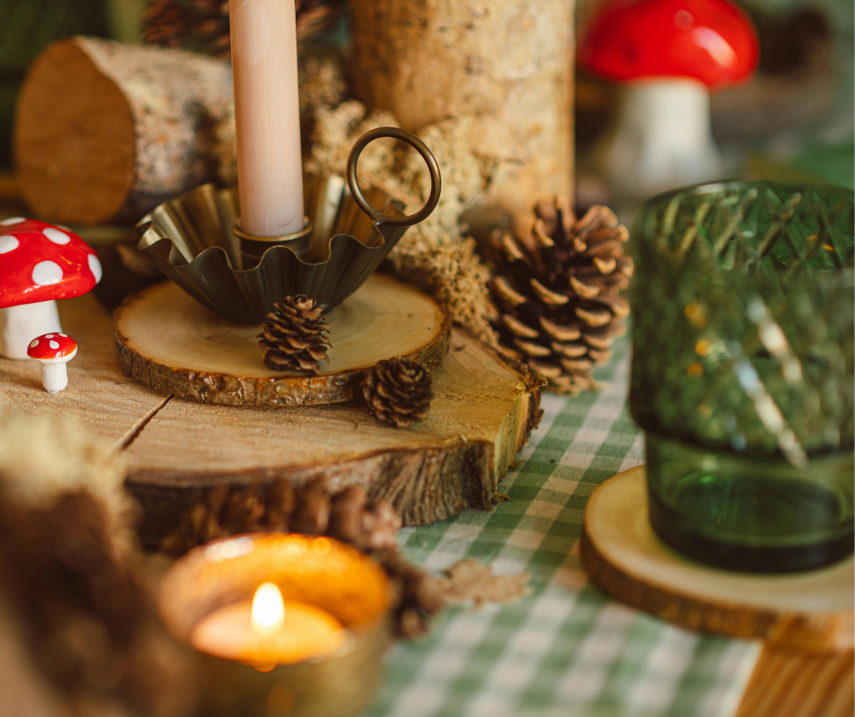 - Decorate with natural touches (pumpkins, pinecones, branches).